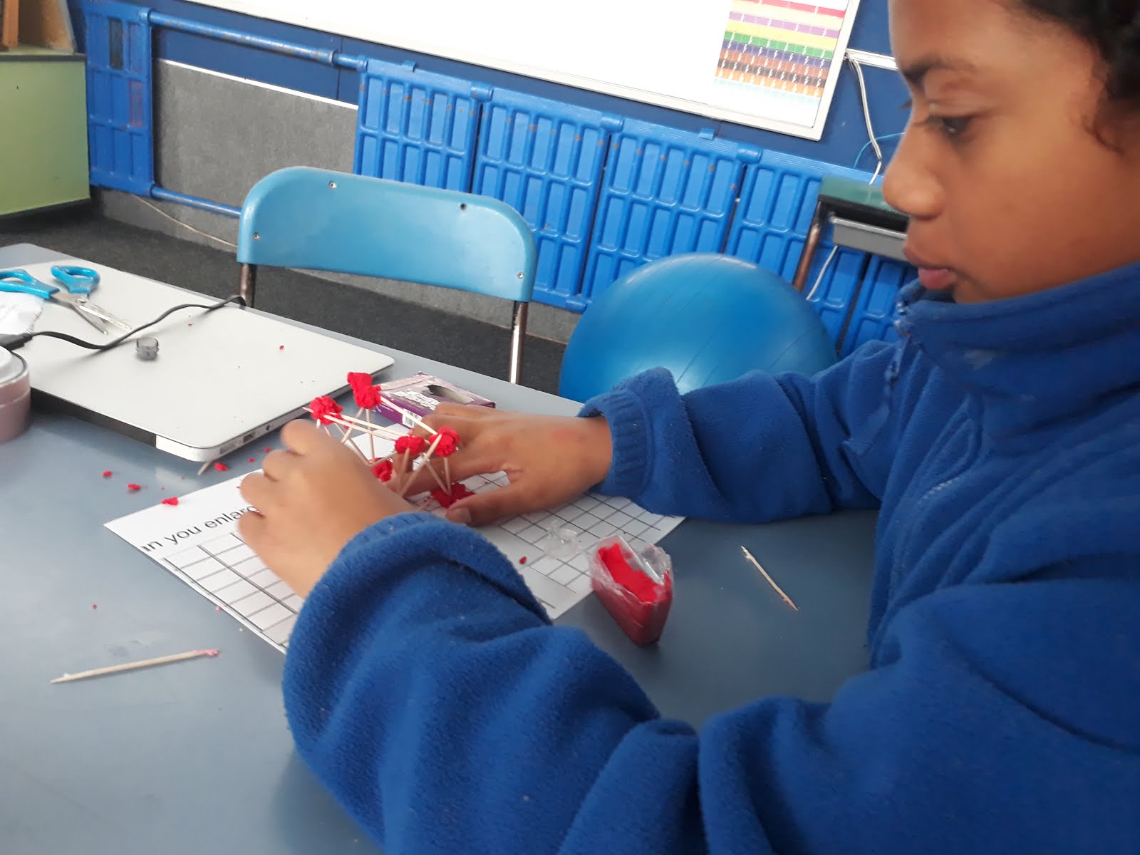 We thought of lots of reasons why this might be. One reason was that there were lots of points at which the piece of paper was touching both the car above it and the table below it. We also saw that the folds of the paper looked like a series of triangles. It was then that we watched a video and found that triangles are the strongest shape and that they are often used to build bridges because the force or weight of the cars going over them is spread evenly between each of the three sides.